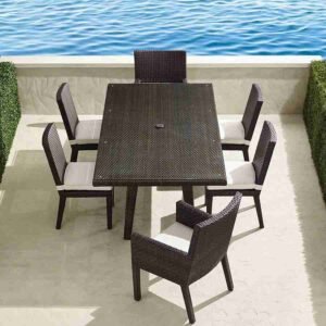 We advice cleaning the furniture without the cushion for the first year. With the help of brush remove leaves & debris. Use warm, soap water and soft clothes to wipe up the dirt. After the dirt has been removed we advise you to rinse your furniture.