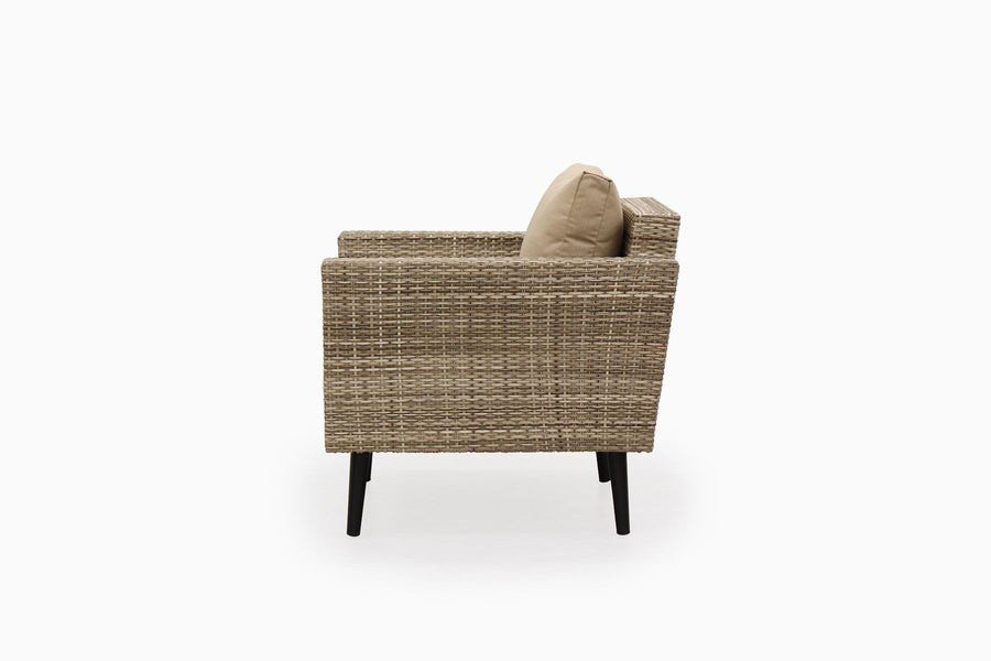 - Construction: Body Frame made with 18gauge MS pipe with powder coated paint, HDPE wicker weaved on body.